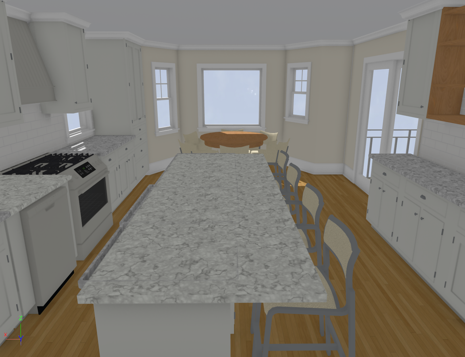 The home has a sophisticated coastal vibe that includes shades of whites, greens and neutrals throughout. While the dining room will have more of an exotic look with royal blue wallpaper on the ceiling and custom molding framing the design.