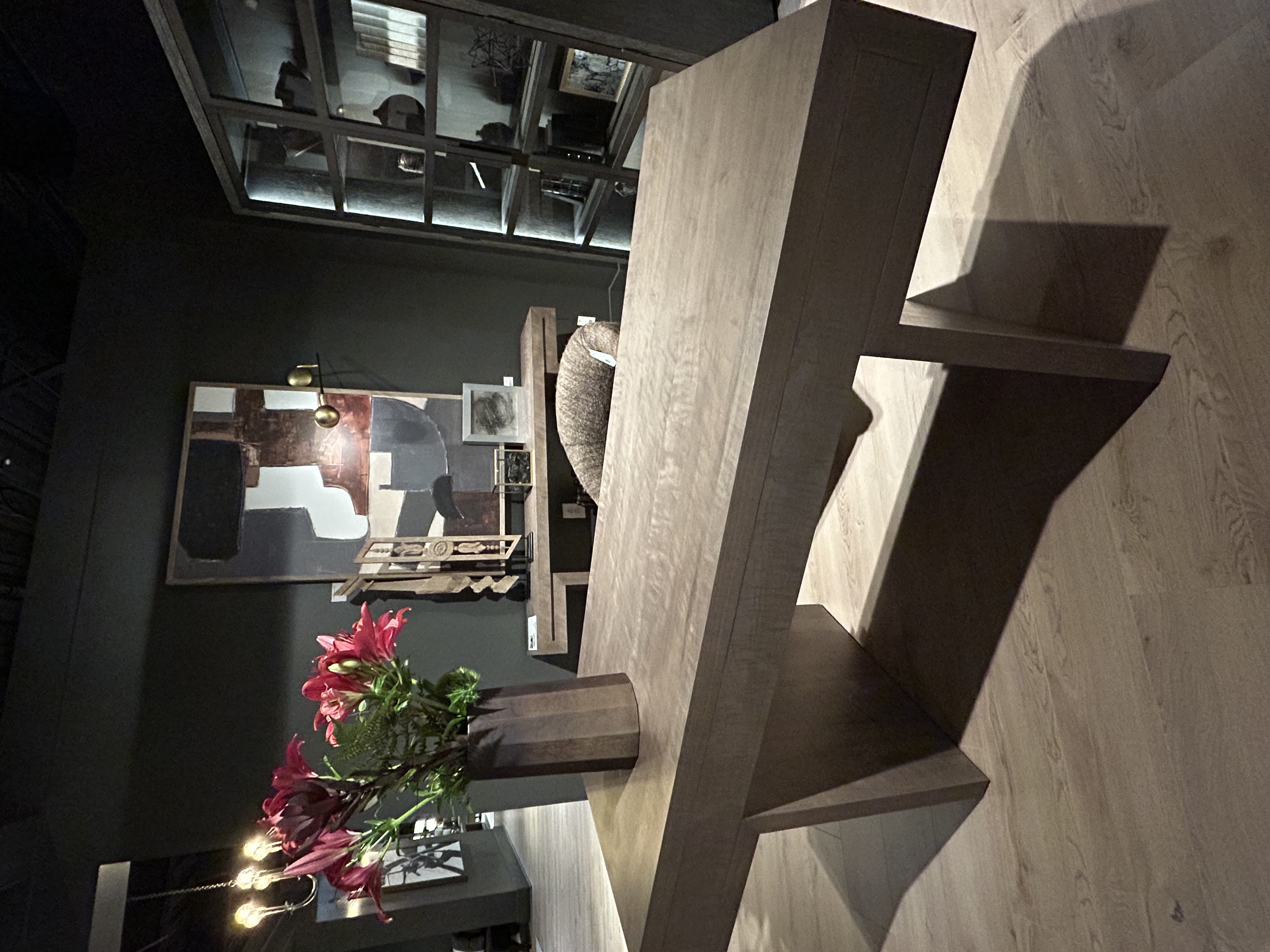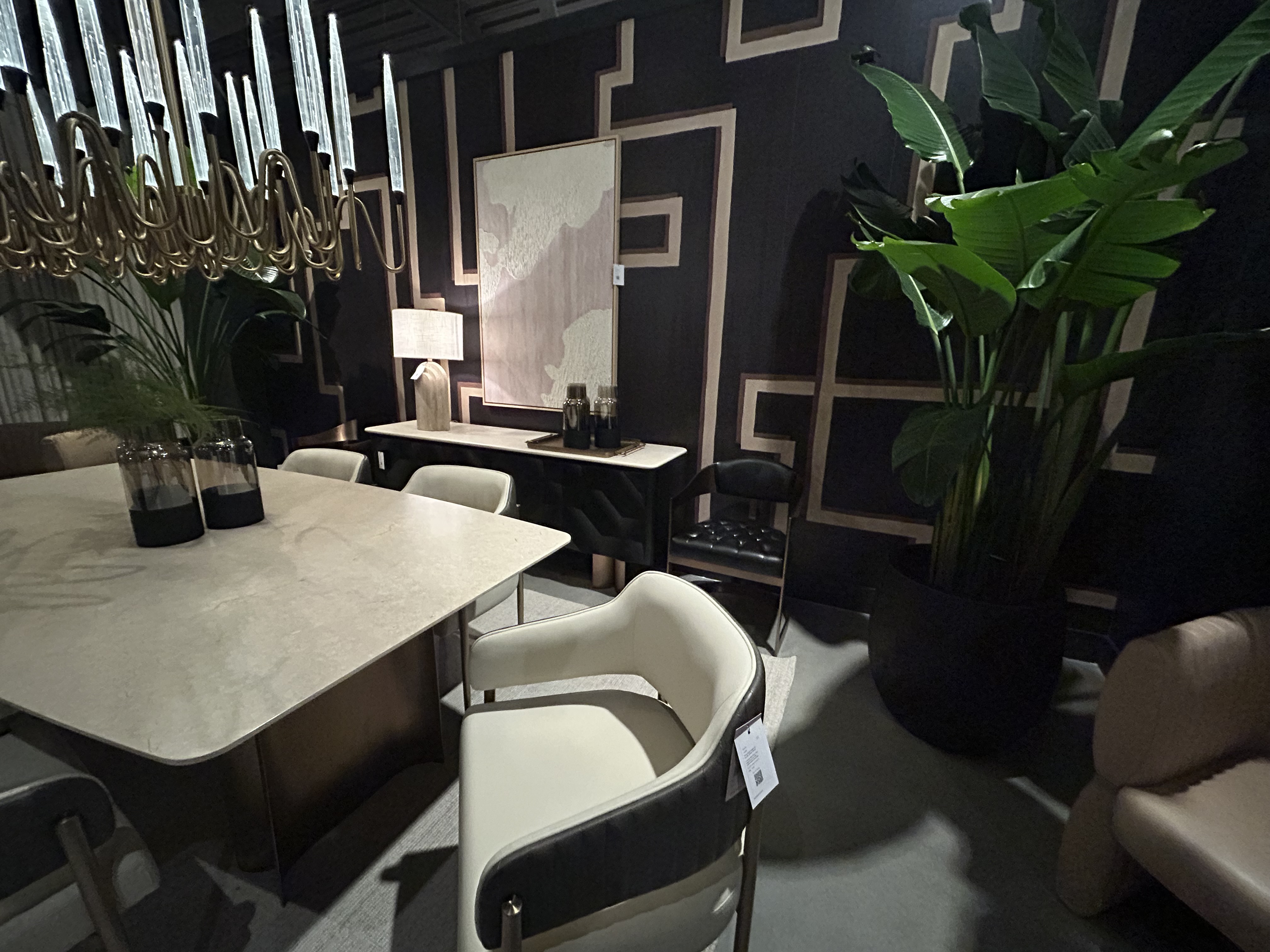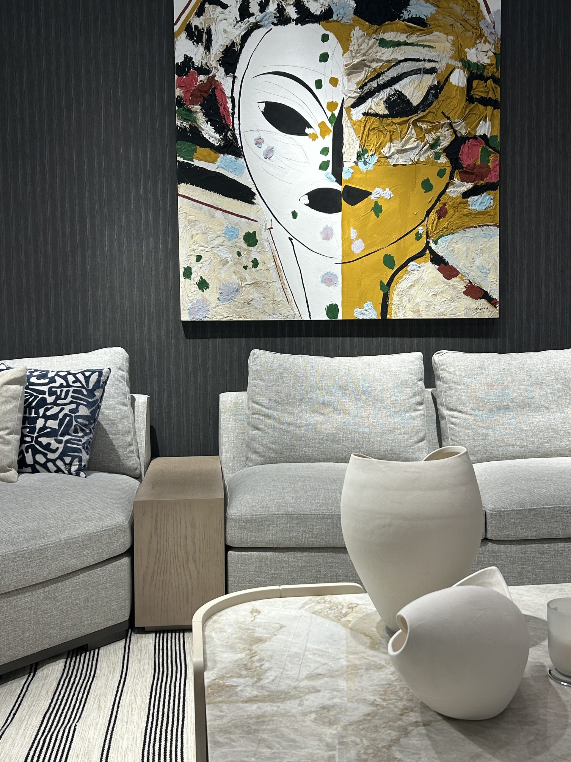 These moody, neutral colors are not the stars of the room, instead most people will use them as an accent in their homes. The richness of color can really bring a room together and give it an elegant, sophisticated look. It’s the mix of different textures, fabrics, materials, and craftsmanship that makes it interesting. This subtle feel and new take on layering can feel both stylish and comfortable and we are seeing many of our clients beginning to embrace this idea in their homes, which I love to see. Watch for more about how to incorporate these new dark, earth tones into your home. Take a look at the photos below from High Point that caught my attention on this trend – I think you will love it.