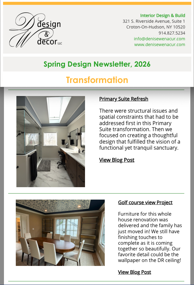 We’ve also been exploring the impact of art in our projects, from statement wall pieces like those by Gabriella Mirabelli—featured in both our March speaker event and this contemporary home—to more immersive applications like wallpaper. Some of the latest installations have been truly striking, including a dining room ceiling in our golf course view project that completely elevates the space.